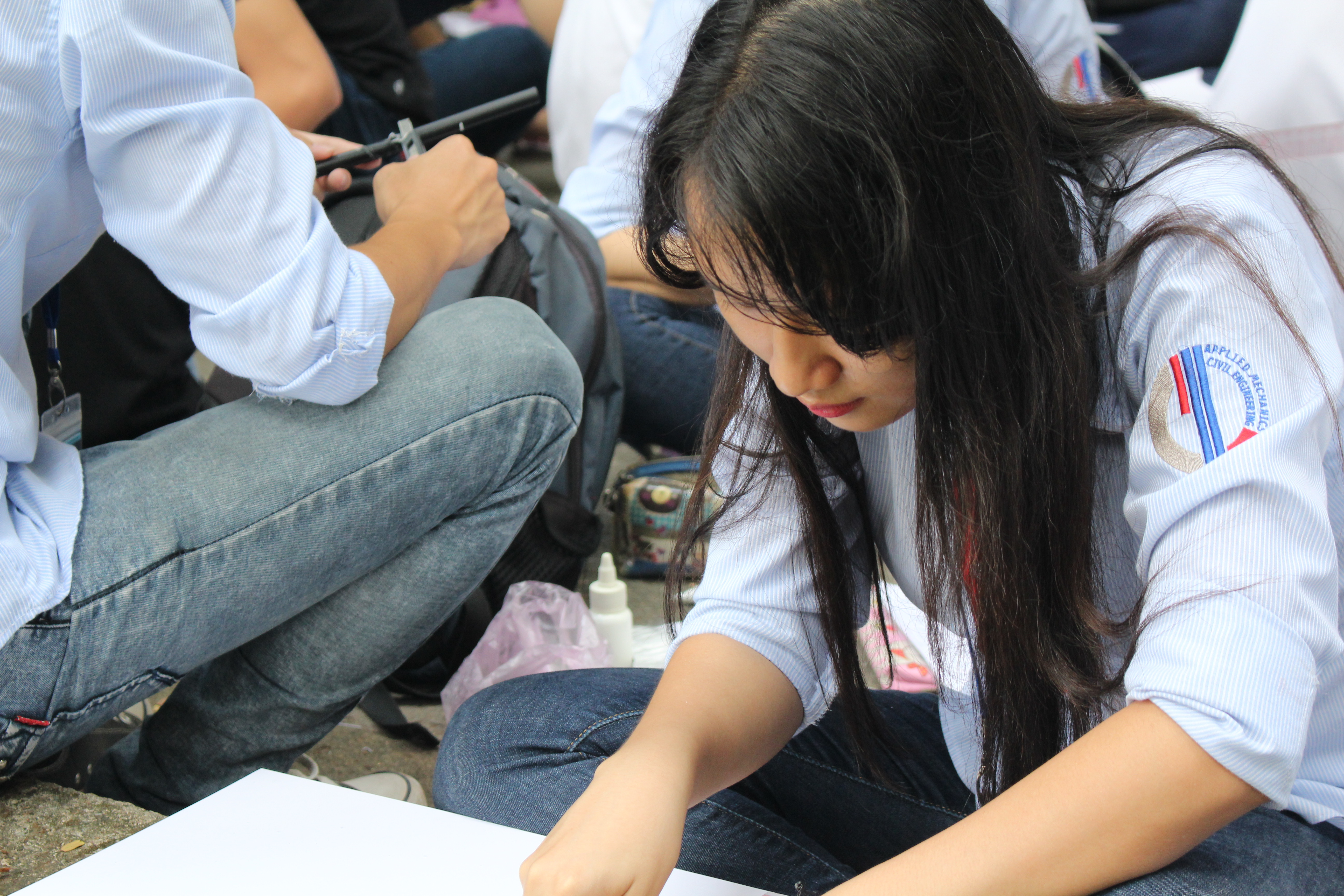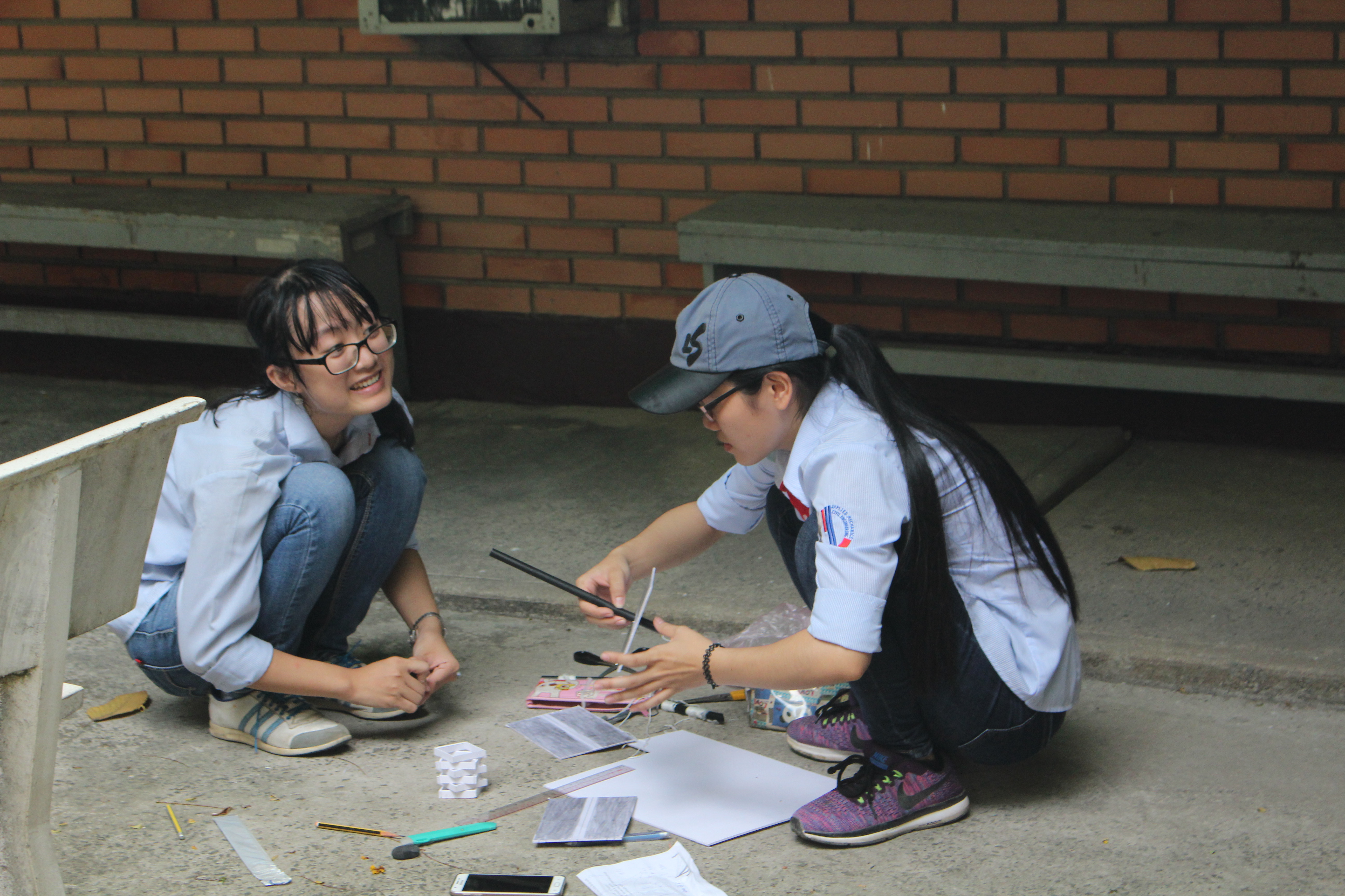 Không chỉ có các bạn nam, mà các bạn nữ cũng tham gia nhiệt tình trong cuộc thi