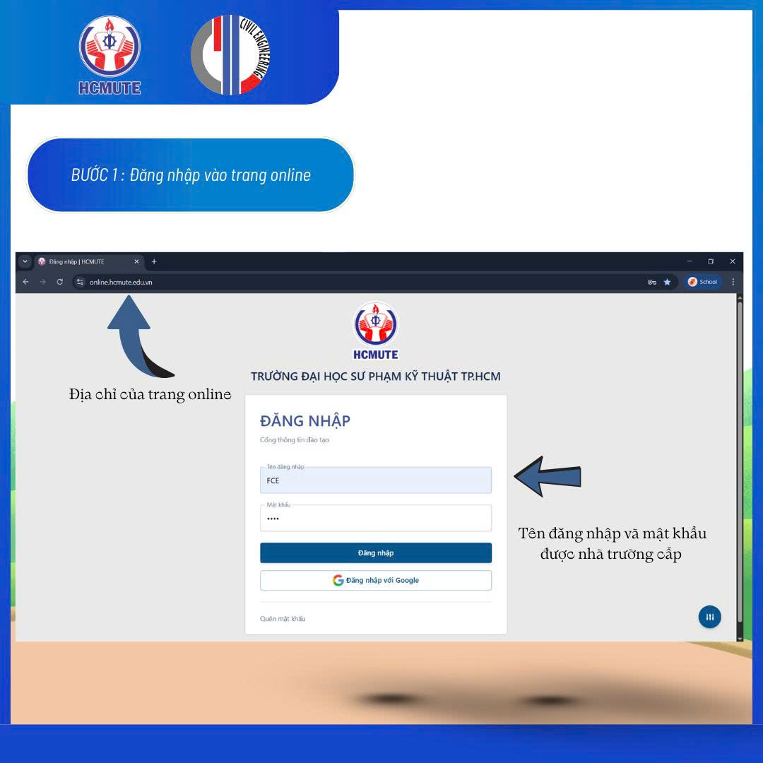 - Truy cập Cổng thông tin đào tạo của trường tại địa chỉ:online.hcmute.edu.vn