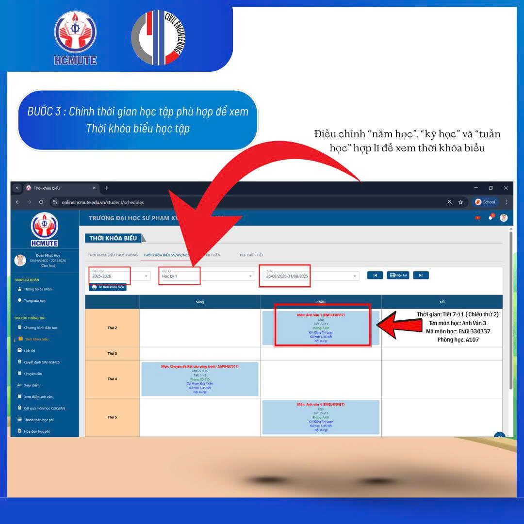 HƯỚNG DẪN TÂN SINH VIÊN XEM THỜI KHÓA BIỂU