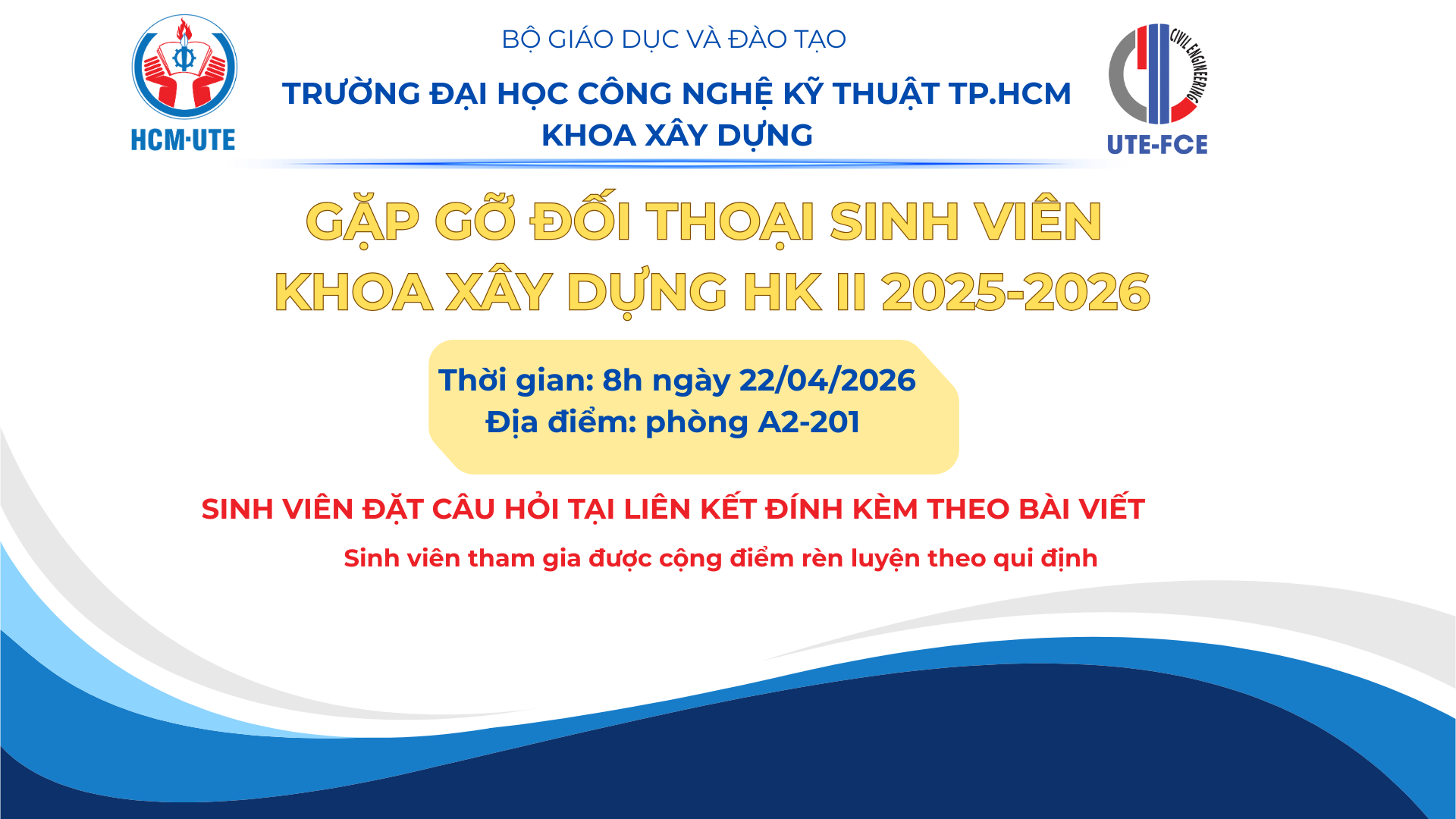 Thân mời các bạn sinh viên tham đóng góp ý kiến và các câu hỏi mà các bạn còn đang băn khoăn để các Thầy, Cô và BCN Khoa sẽ tập hợp và giải đáp cho các bạn tại buổi gặp gỡ và đối thoại với BCN Khoa, học kỳ II năm học 2025-2026
