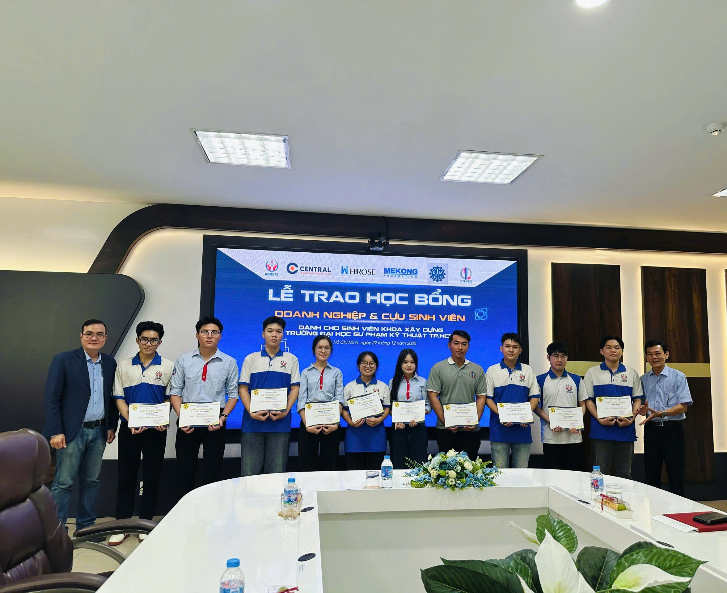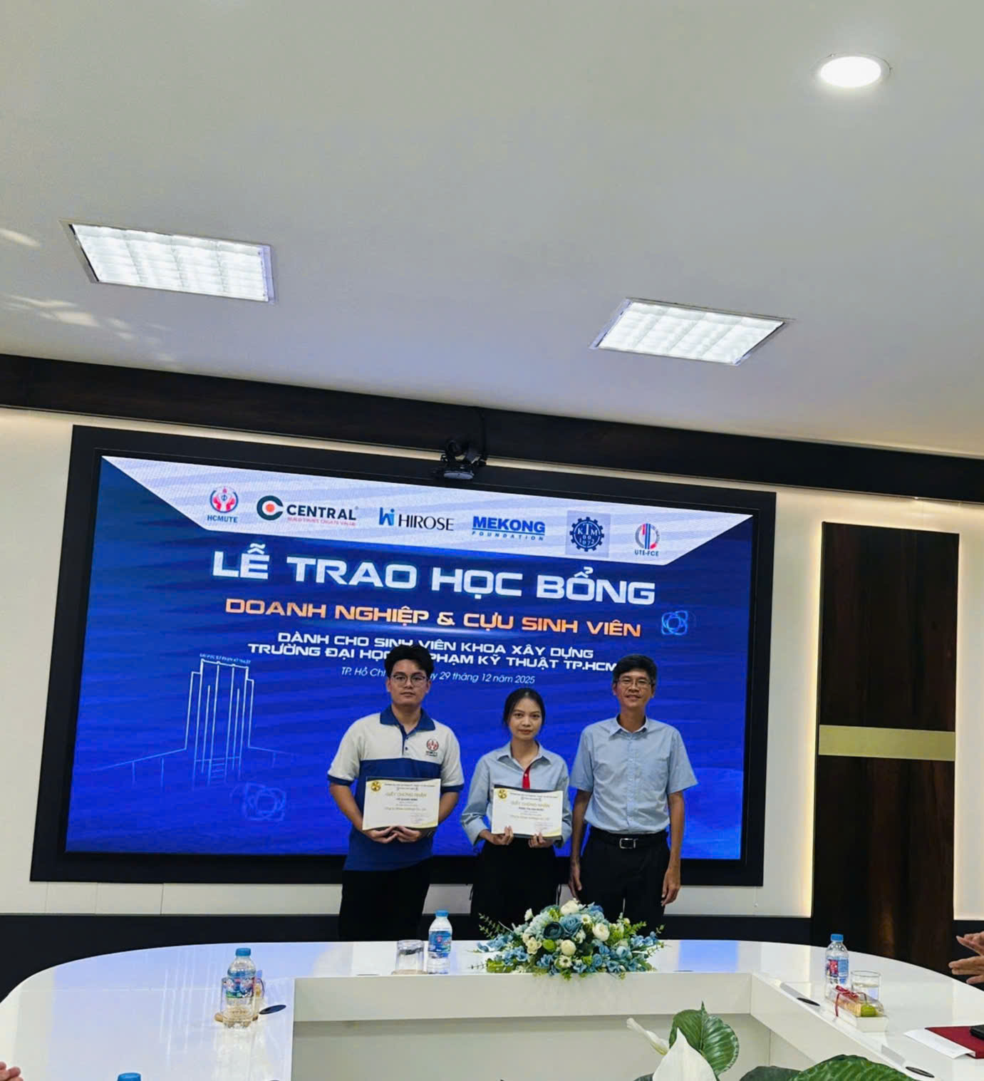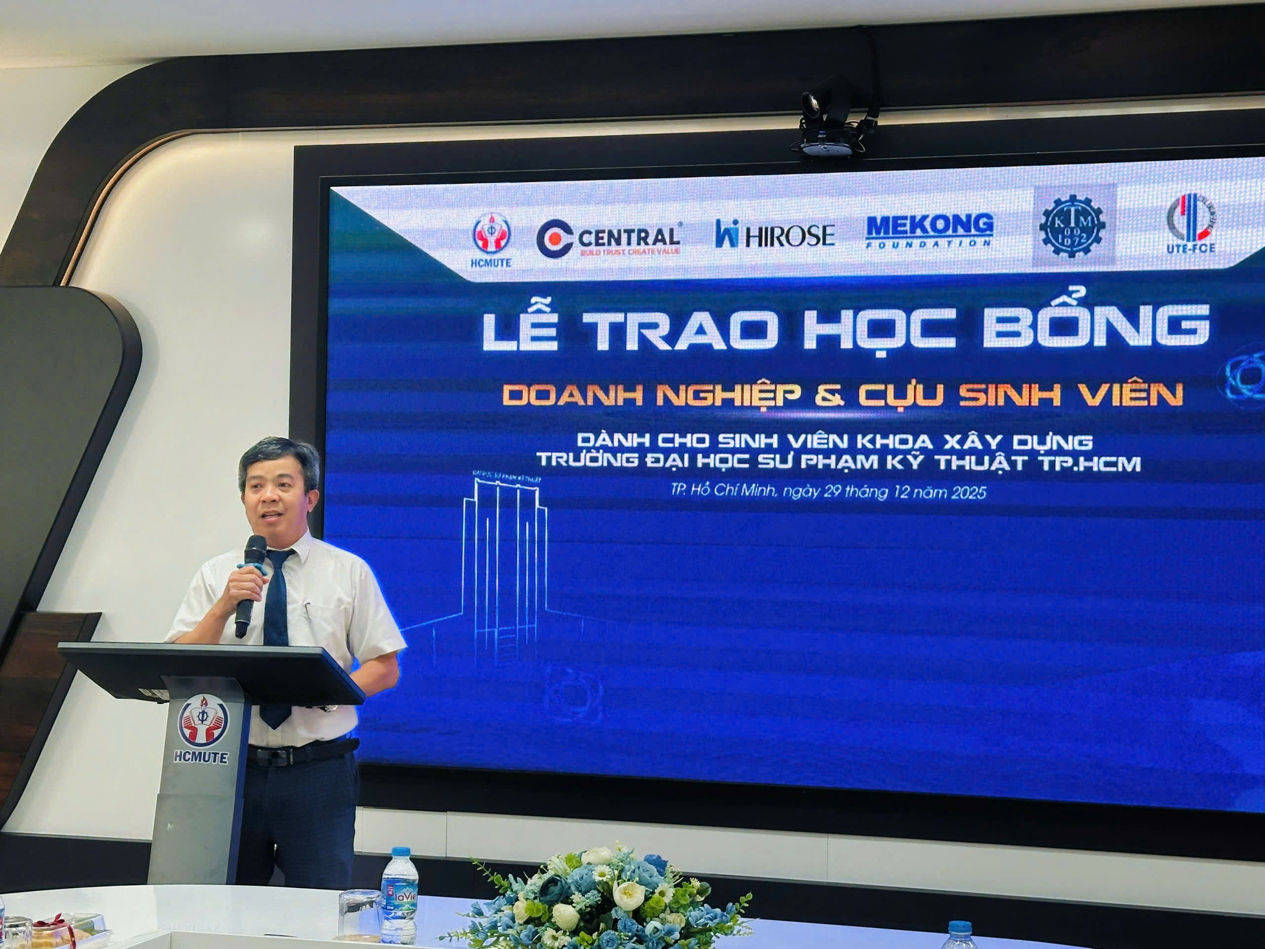 Sáng ngày 29/12/2025, tại Phòng họp 1 – Tầng 5Trường Đại học Công nghệ Kỹ thuật TP.HCM (HCMUTE), Khoa Xây dựng phối hợp cùng Phòng Quan hệ Doanh nghiệp và các đơn vị tài trợ đã tổ chức Lễ trao học bổng cho các bạn sinh viên xuất sắc.