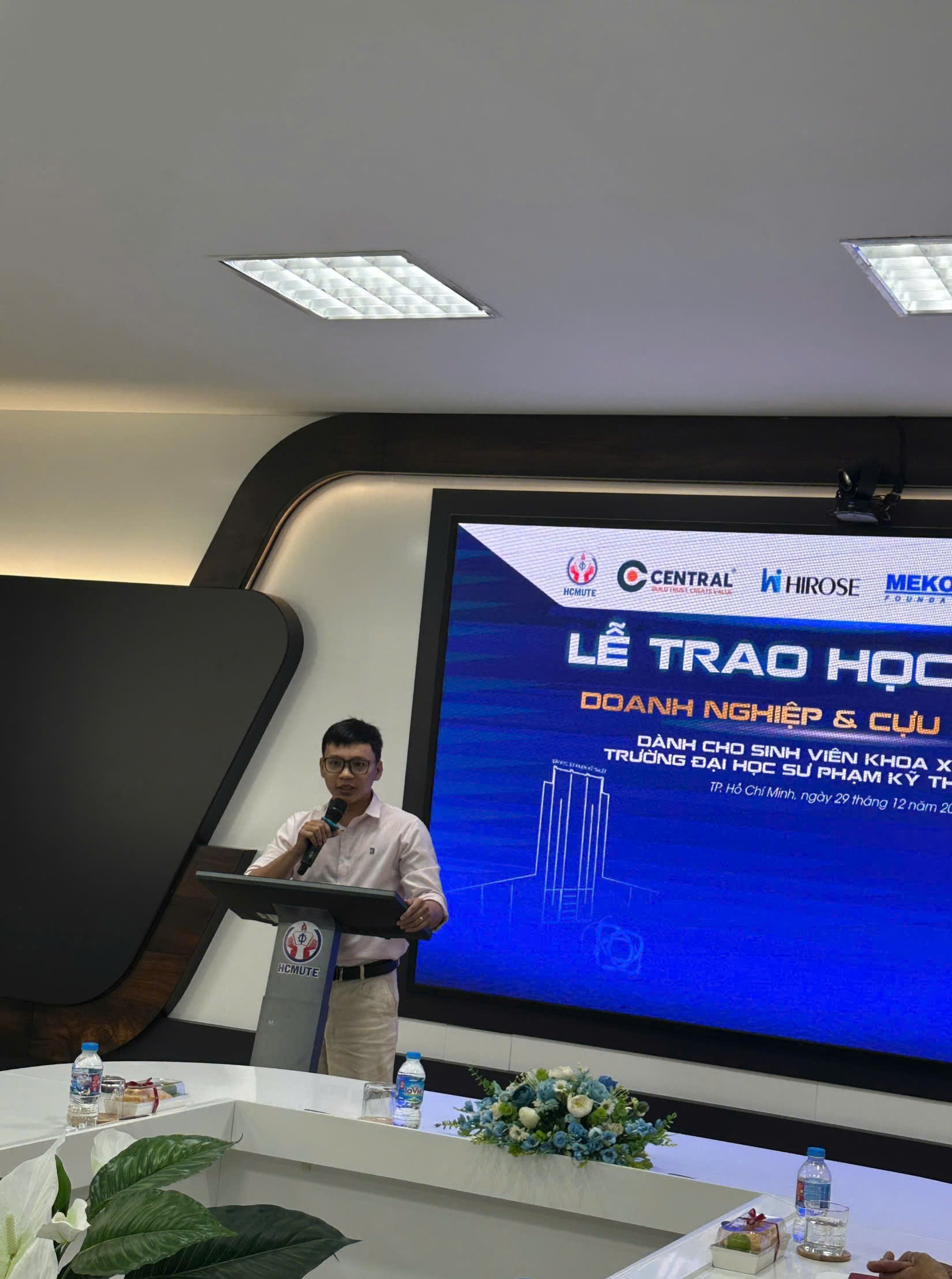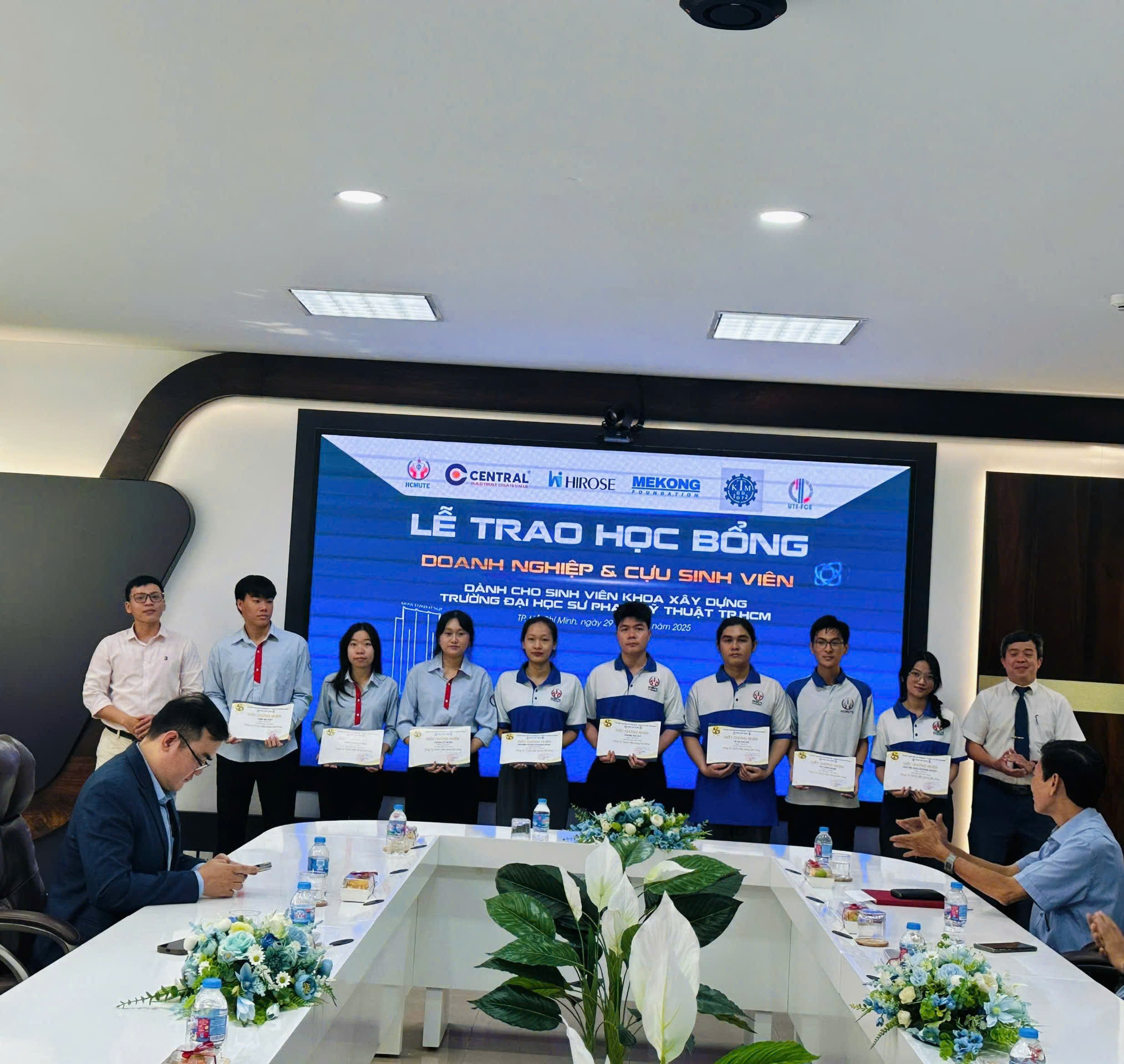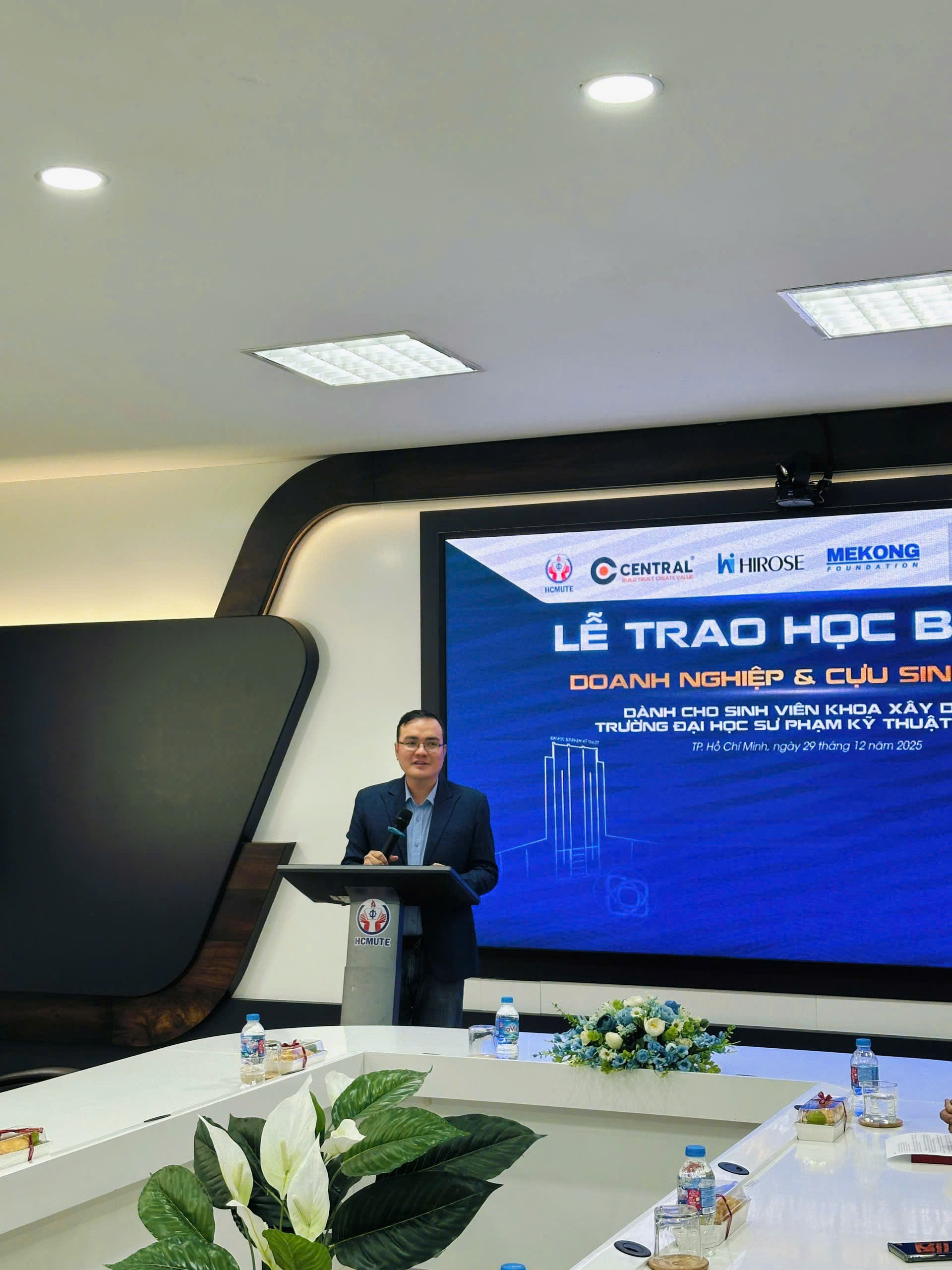 Sáng ngày 29/12/2025, tại Phòng họp 1 – Tầng 5Trường Đại học Công nghệ Kỹ thuật TP.HCM (HCMUTE), Khoa Xây dựng phối hợp cùng Phòng Quan hệ Doanh nghiệp và các đơn vị tài trợ đã tổ chức Lễ trao học bổng cho các bạn sinh viên xuất sắc.