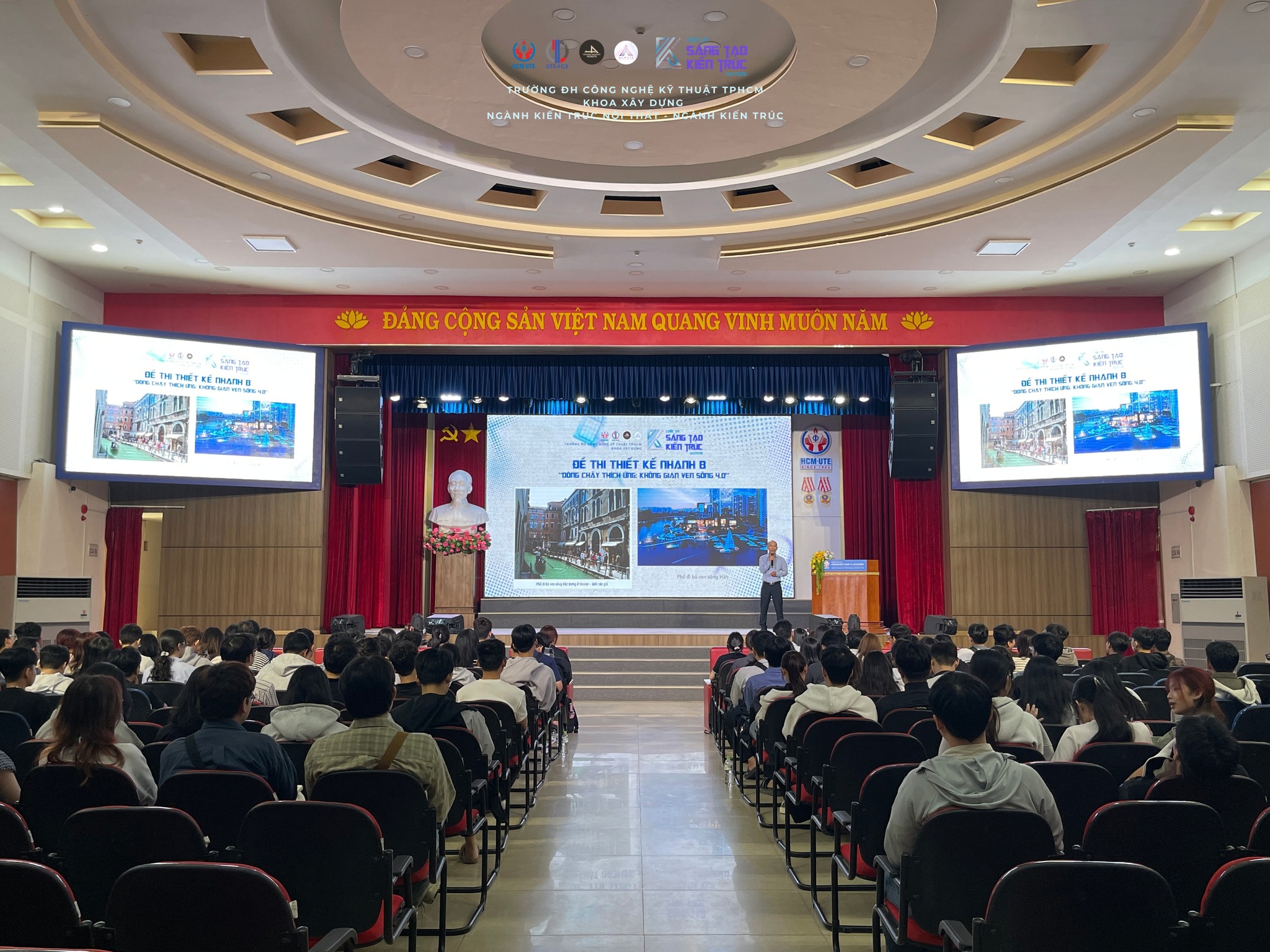Sáng ngày 07 và 08/03, buổi giảng đề của cuộc thi Sáng tạo Kiến trúc IAUTE 2026 đã chính thức diễn ra, mở đầu cho hành trình sáng tạo của mùa thi năm nay. Bên cạnh các đội sinh viên đến từ nhiều trường đại học đào tạo ngành Kiến trúc và Nội thất, còn có sự tham gia của khối học sinh đến từ các trường THPT trong khu vực.