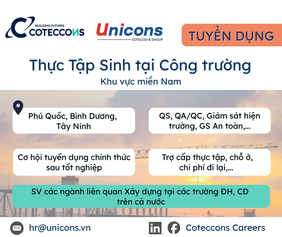 CÔNG TY TNHH ĐẦU TƯ XÂY DỰNG UNICONS thuộc COTECCONS GROUP cần tuyển Thực tập sinh Giám sát xây dựng